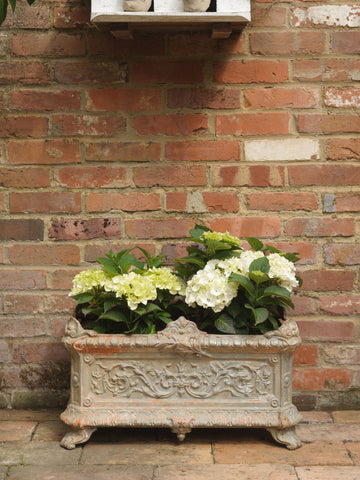 Large French Rococo Revival Cast Iron Jardiniere Footed Planter, with old silver paint. Extremely decorative an...