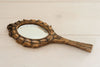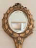 This beautiful Antique French Gilt and wooden bevelled glass hand mirror is in excellent condition and has an abundance of gorgeous detailing.